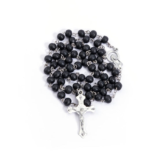 Classic wood beads 6mm rose perfume, prayer rosary, Jesus cross necklace necklace, stylish Catholic religious jewelry.