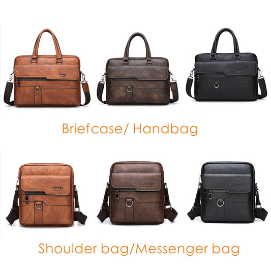 JEEP BULUO Brand Man Business Briefcase Bag Split Leather High Quality Men office Bags For 14 inch Laptop A4 File Causel Male