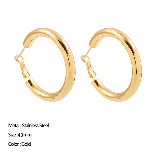 Classic Stainless Steel Ear Buckle for Women Trendy Gold Color Small Large Circle Hoop Earrings Punk Hip Hop Jewelry Accessories