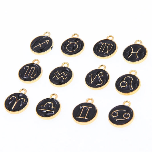 Black enamel 12 Pieces/Set Metal Alloy Enamel Zodiac Signs Charms Pendant Diy Hand Made Jewelry Accessories
