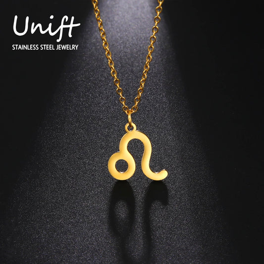 Unift Aries Pisces Taurus Zodiac Sign Necklace Stainless Steel Pendant Constellation Horoscope Jewelry Birthday Gift Wholesale