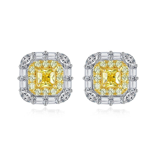 Wong Rain Chic 100% 925 Sterling Silver Citrine High Carbon Diamonds Gemstone Earrings Ear Stud Wedding Fine Jewelry Wholesale