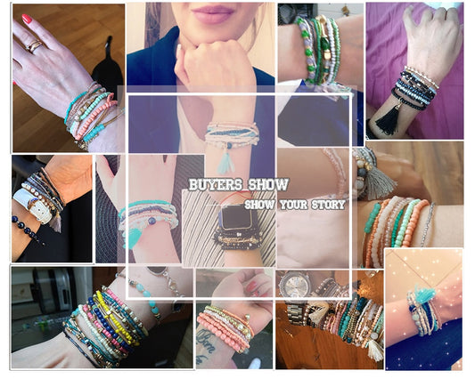 Women Bohemian Jewelry Multilayer Elastic Set Bracelets Bangles With Tassel Gold Coin Glass Beads Charm Wrap Bracelet Femme Gift