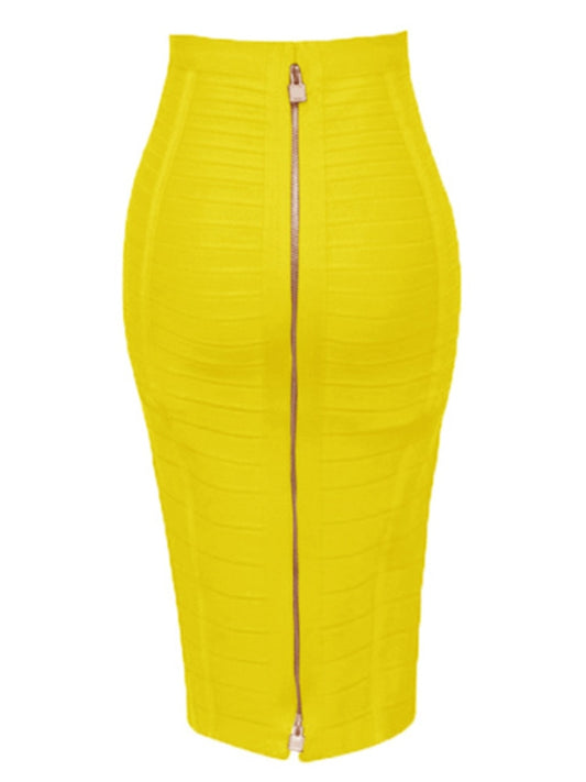 16 Colors XL XXL Sexy Solid Zipper Orange Blue Black Red White Pink Bandage Skirt Women Elastic Bodycon Summer Pencil Skirt 58cm