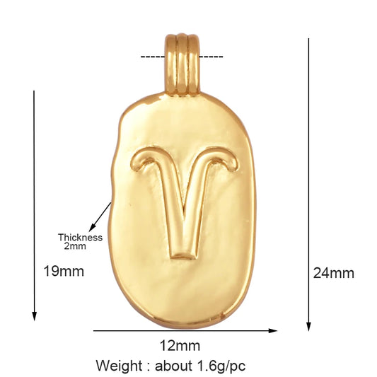 Trendy Charm Zodiac Horoscope Sign Medallion Pendant Real 18K Gold Plated Sparkle for Necklace Bracelet Jewelry Making Supply
