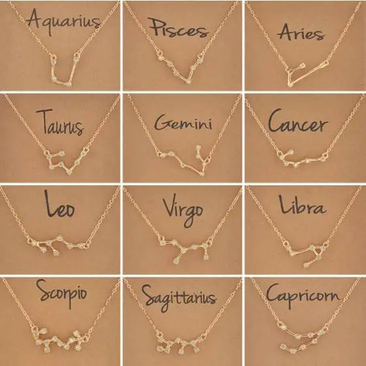 Hot Sale12 Zodiac Letter Constellations Chain Necklace For Women Men Aries Virgo Libra Scorpio Capricorn Aquarius Birthday Gift