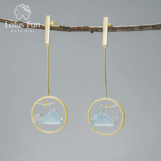 Lotus Fun Natural Gemstone Bird Whisper Dangle Earrings Real 925 Sterling Silver Fine Jewelry Long Earring for Women New Arrival