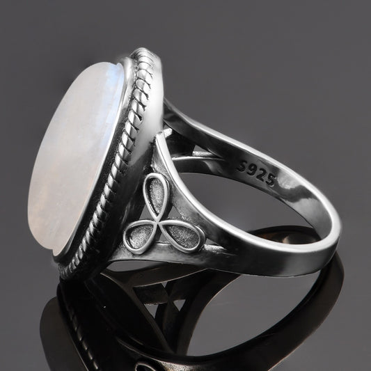 Natural Moonstone Rings for Women's Silver 925 Jewelry Vintage Party Rings With 11x17MM Big Oval Gemstone Gifts Wholesale