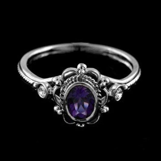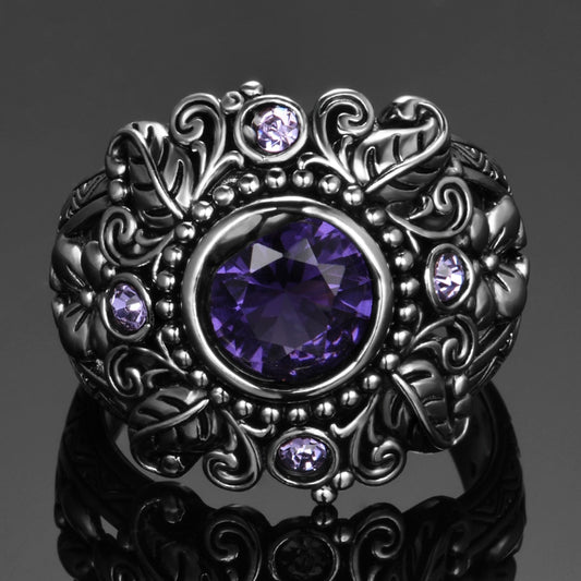 Vintage Jewelry 3ct Amethyst Silver Color Ring Round Cut Purple Nature stone Women Wedding Anel Aneis Gemstone Rings