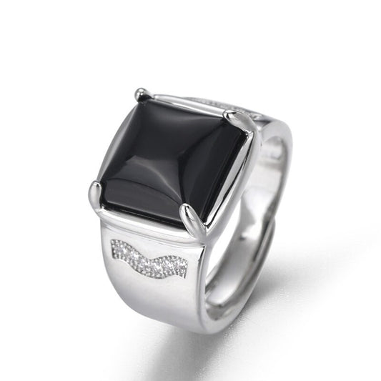 Trendy Men Ring Silver 925 Jewelry Accessories with Obsidian Zircon Gemstone Open Finger Rings for Wedding Engagement Party Gift