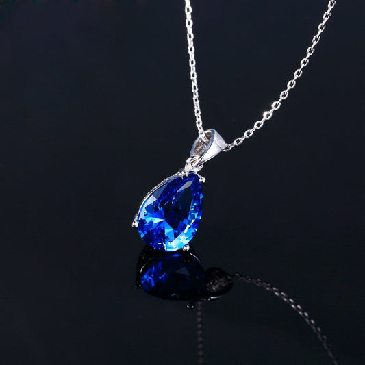 Nasiya Women's Fashion Necklaces Pendants Aquamarine Blue Sapphire Water Drop Gemstone Party Wedding Jewelry Gift