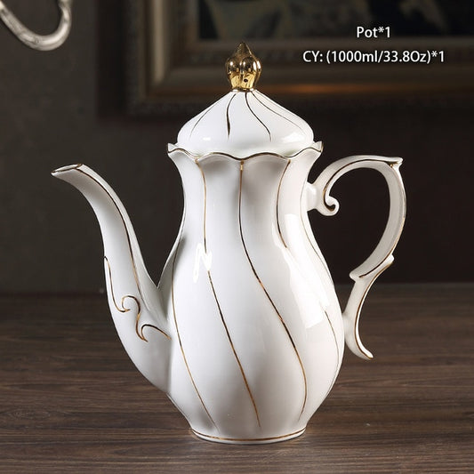 Gold Inlay Bone China Coffee Set Europe Porcelain Tea Set Ceramic Pot Creamer Sugar Bowl Teapot Coffee Cup Tea Mug Coffeeware