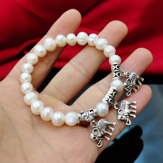 Cellacity Ethnic style Silver 925 Jewelry Freshwater Pearl Pearl Bracelet for Women Elephant Thai silver Natural Thailand style