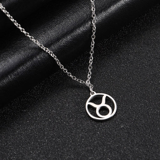 Skyrim Zodiac Libra Leo Pendant Necklace Women Sagittarius Taurus Cancer Virgo Stainless Steel 12 Constellation Necklaces Gift