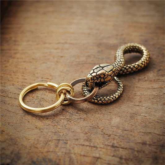 Handmade Pure Copper Zodiac Snake Keychains Pendants Vintage Brass Animal Python Waist Buckle Punk Men Women Car Key Chain Rings