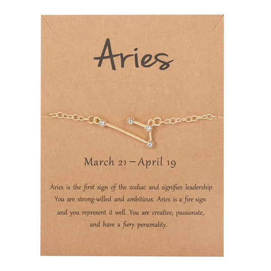 12 Constellation Bracelet Crystal Charm Chain Bracelets for Women Zodiac Sign Libra Aries Wish Card Birthday Jewelry Gift