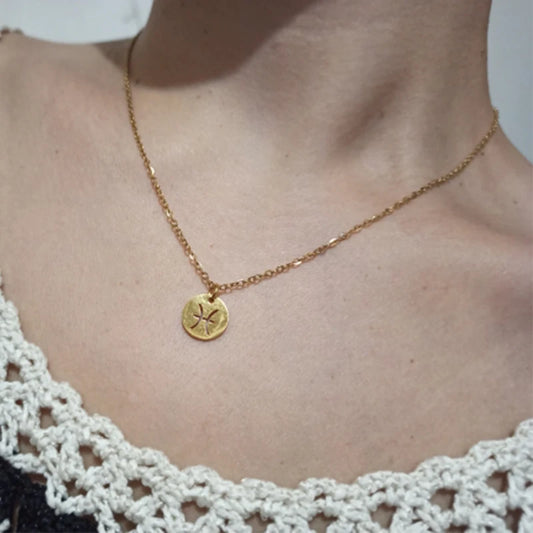 Stainless Steel 12 Constellation Necklace For Women Zodiac Sign Necklace Gold Plated Round Coin Clavicle Chain Vintage Jewelry