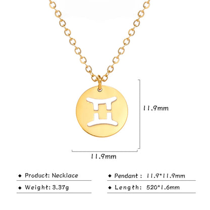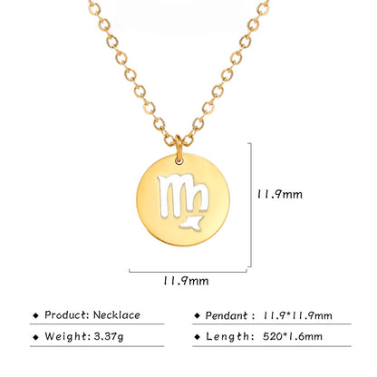 Stainless Steel Star Zodiac Sign Necklaces 12 Constellation Choker Pendants Aries Libra Leo Collier Birthday Gift