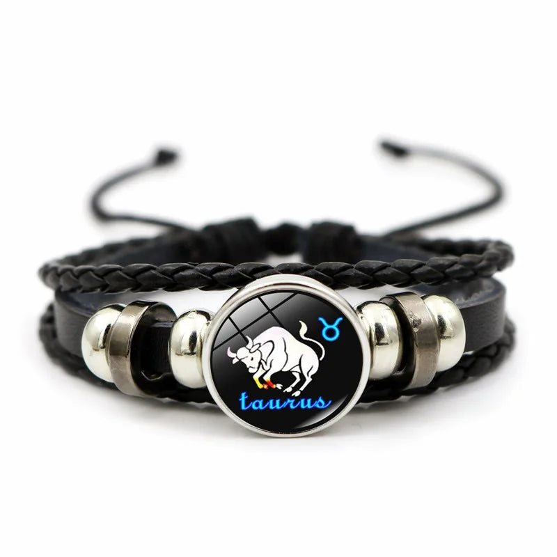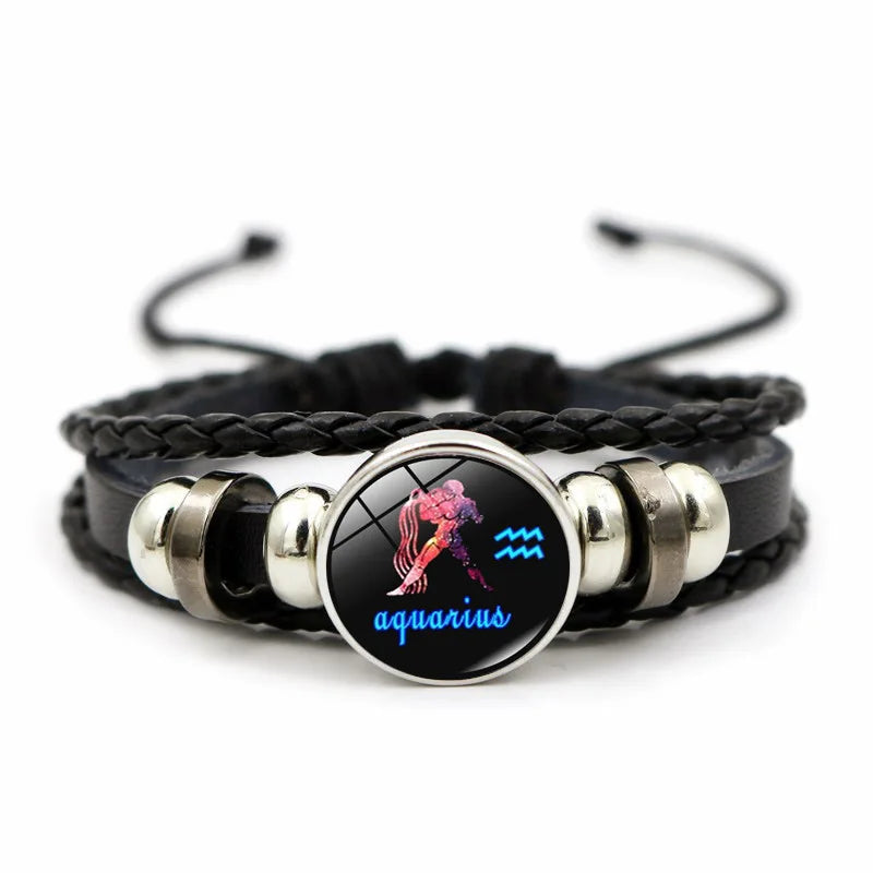 12 Zodiac Signs Constellation Charm Bracelet Men Women Fashion Multilayer Weave leather Bracelet & Bangle Birthday Gifts-1