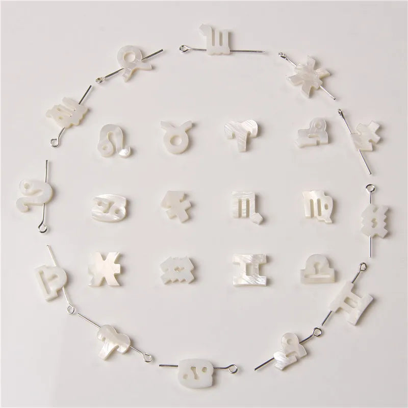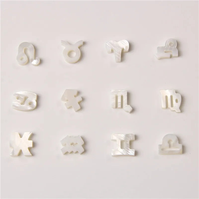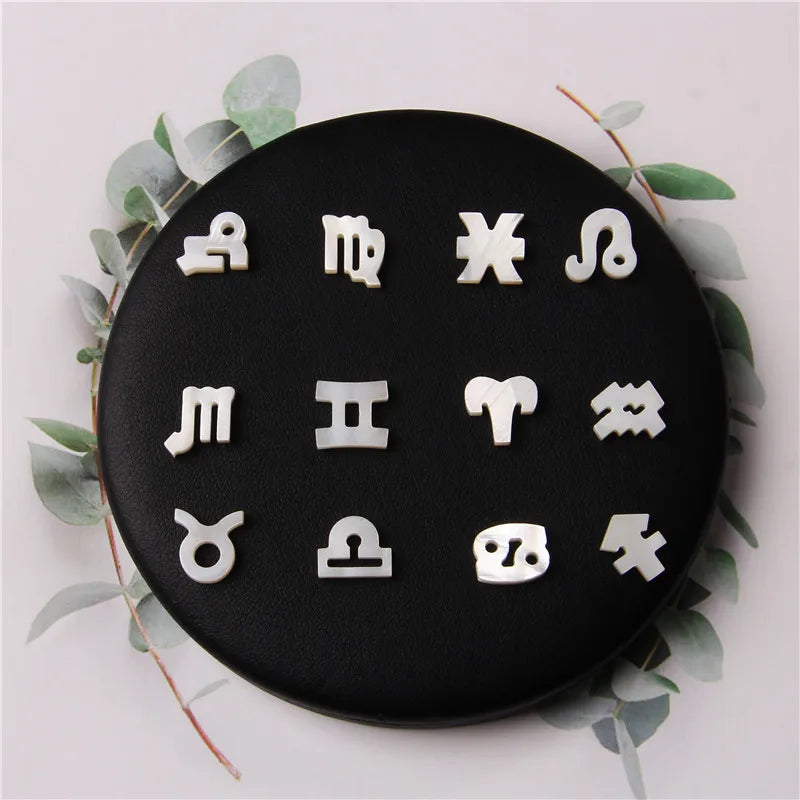 12 Zodiac Signs Constellation Charms Natural Mother of Pearl Shell Letter Aries Charm jewelry Diy for Women Men and Child Gifts