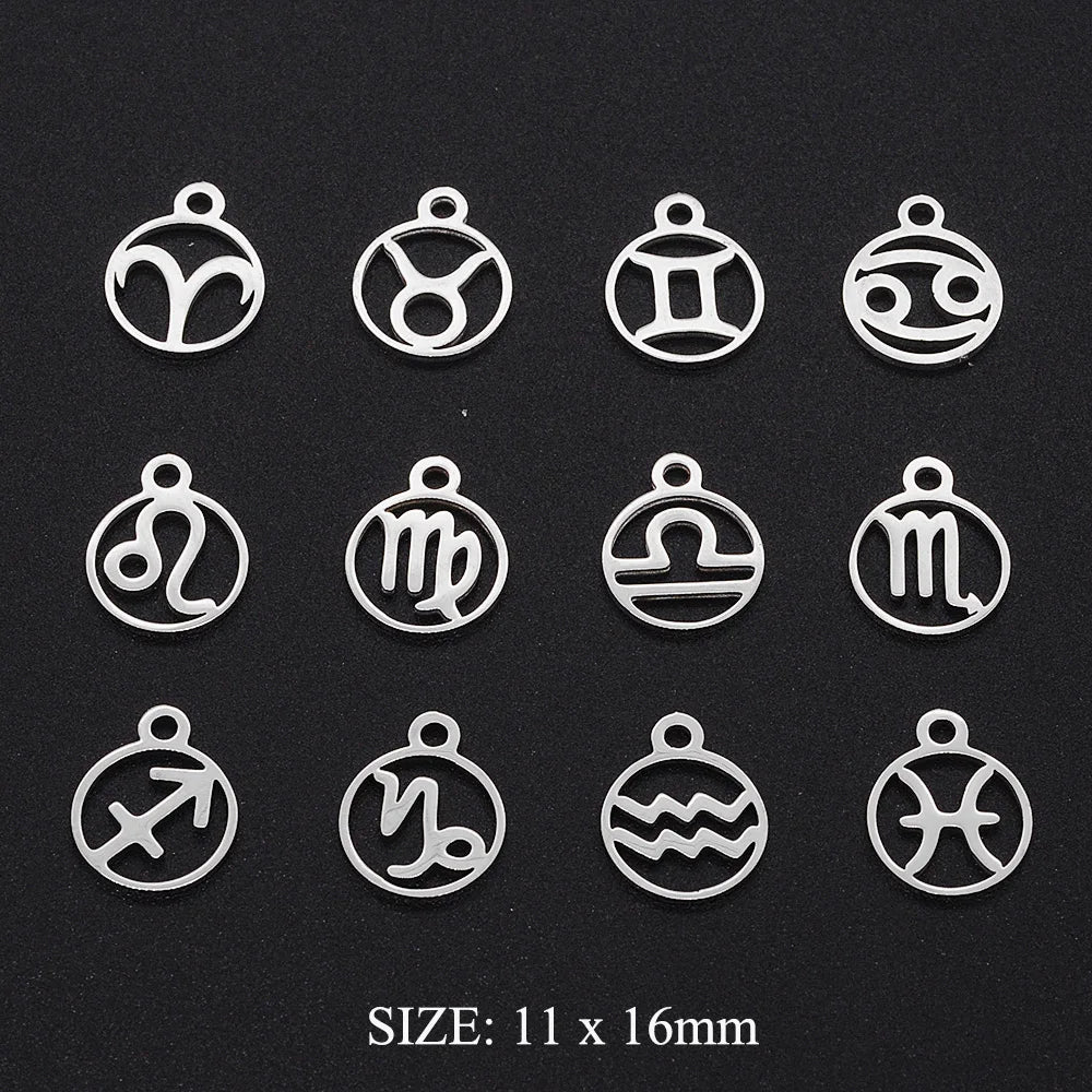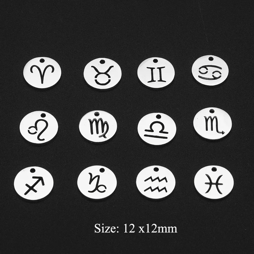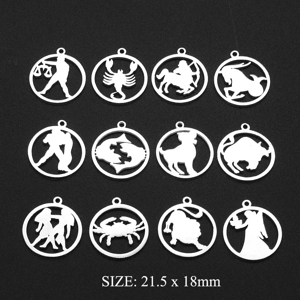 12pcs/set Zodiac Sign Stainless Steel Horoscope DIY Jewelry Charms Connector Wholesale Earring Making Pendant Factory Price