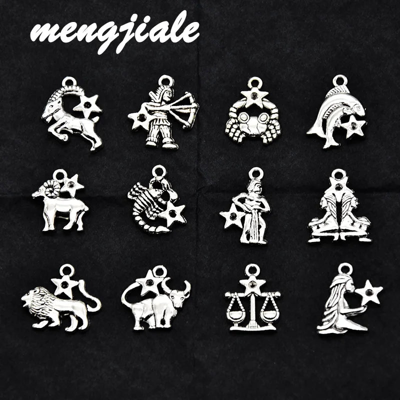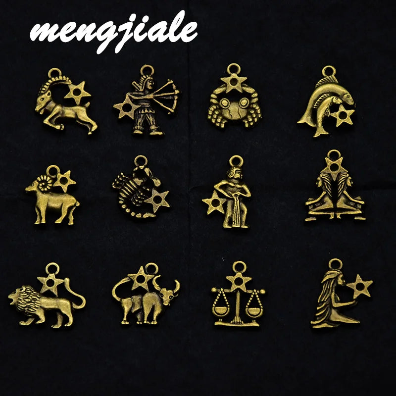 12pcs(1set) Wholesale Two Color Zodiac Charms Alloy Metal Constellation Pendants For DIY Handmade Jewelry Accessories Making