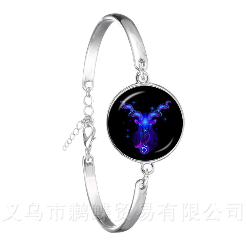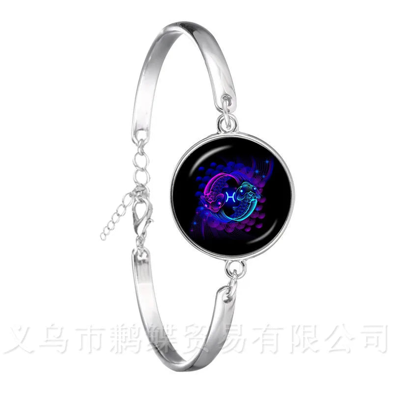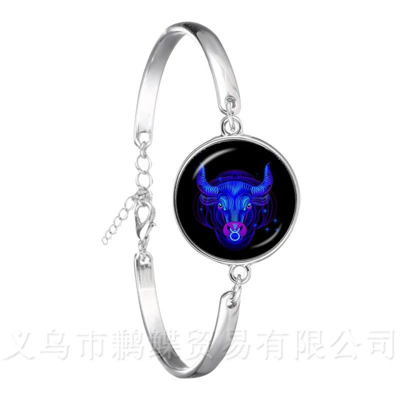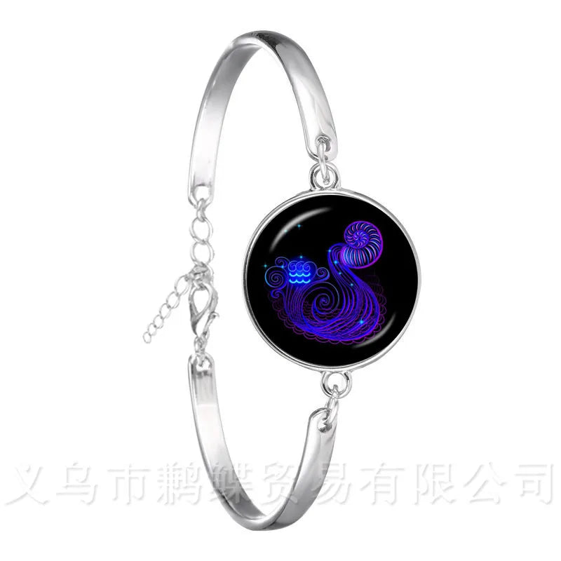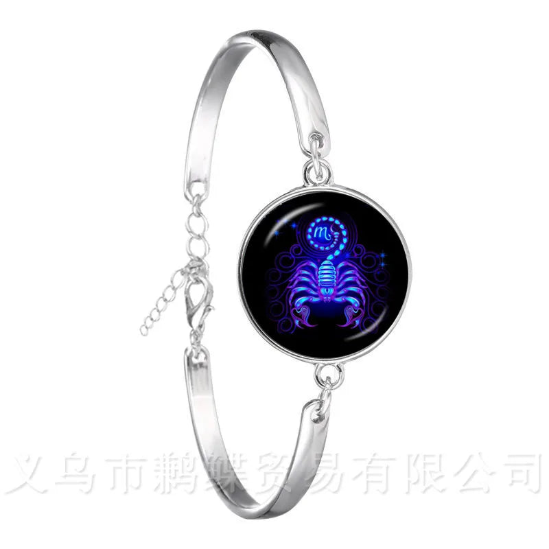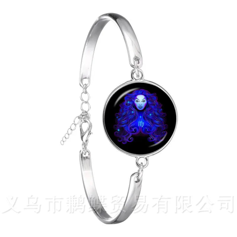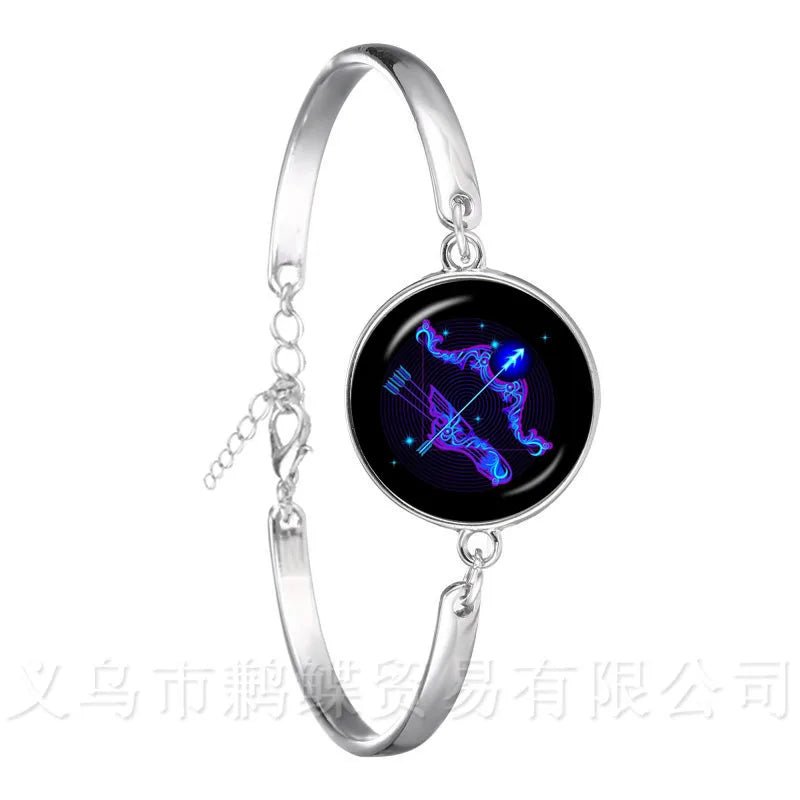 2018 Fashion Bracelet Galaxy Constellation Design 12 Zodiac Sign Horoscope Astrology Silver Plated Bangle For Women