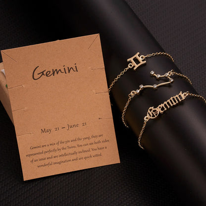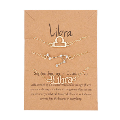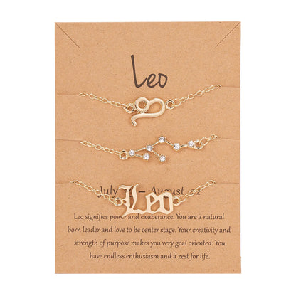 Theme: 3 PCS/Set Constellation Zodiac Sign Chain Bracelet