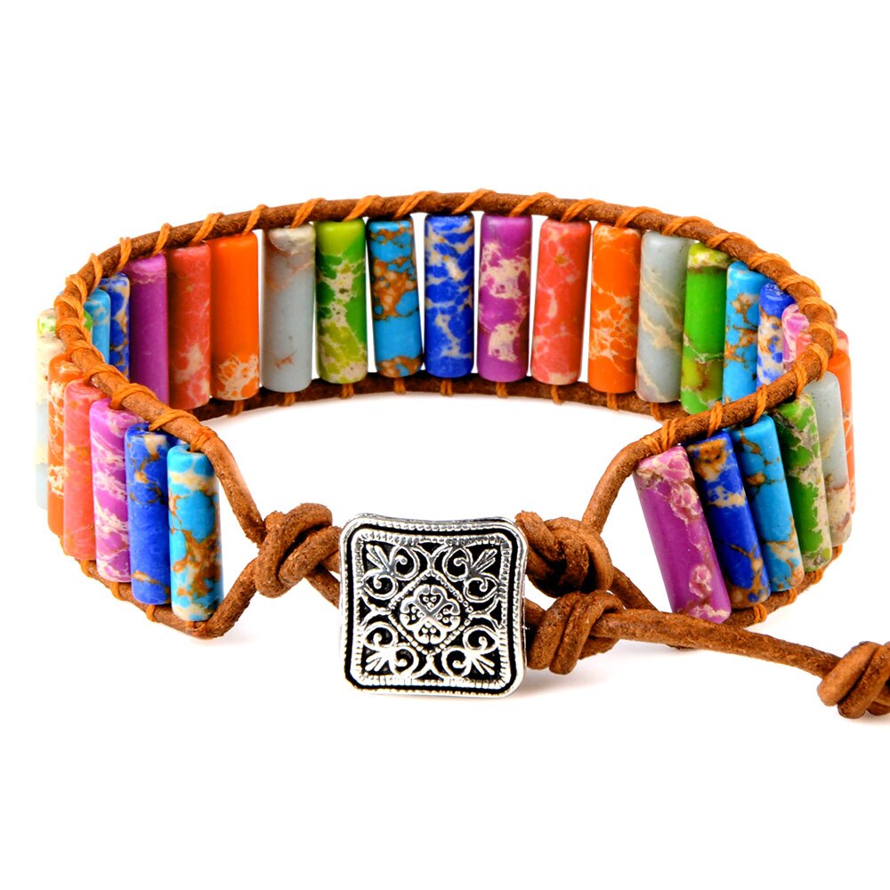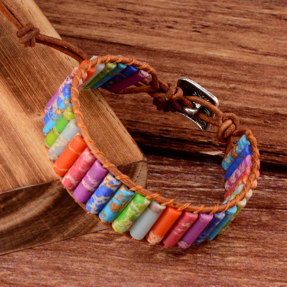 7 MultiColor Chakra Natural Stone Bracelet Bohemia Handmade Tube Beads Genuine Leather Wrap Bracelet Yoga Bracelets For Woman