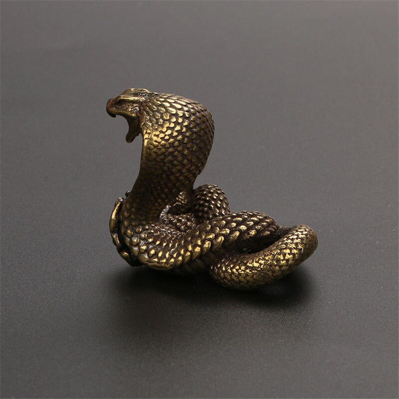 Antique Bronze Cobra Statue Ornament Zodiac Snake Miniature Figurines Copper Desktop Decoration Tea Pets Decor Accessories Craft