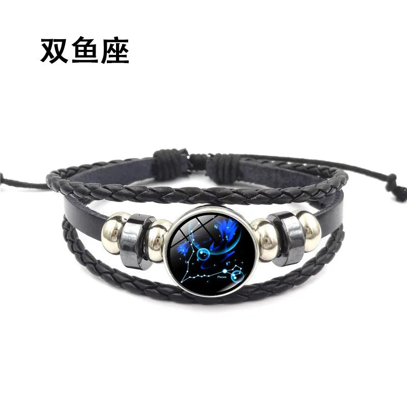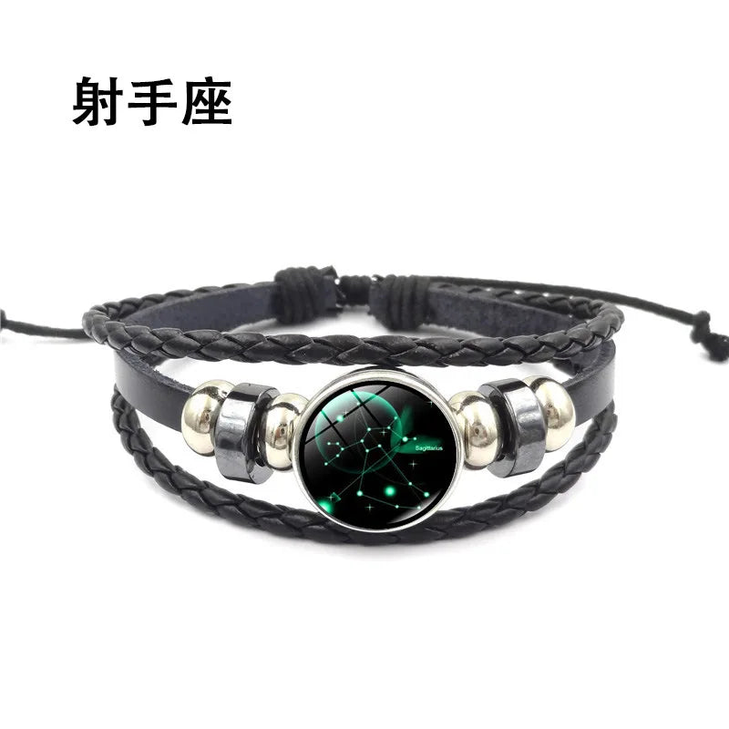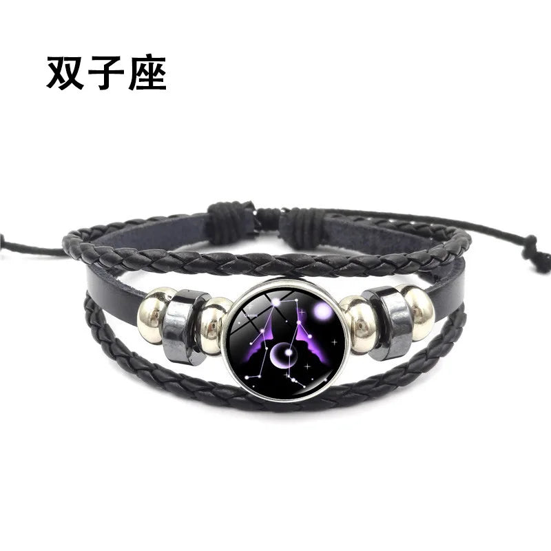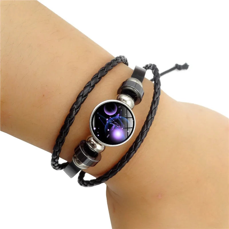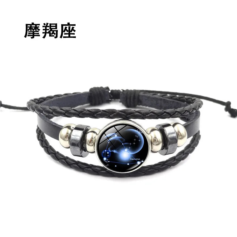 Aries/Taurus/Gemini/cancer/LEO/Virgo/Libra/Scorpio Zodiac Signs Button Leather Bracelet 12 Constellations Jewelry For Birthday