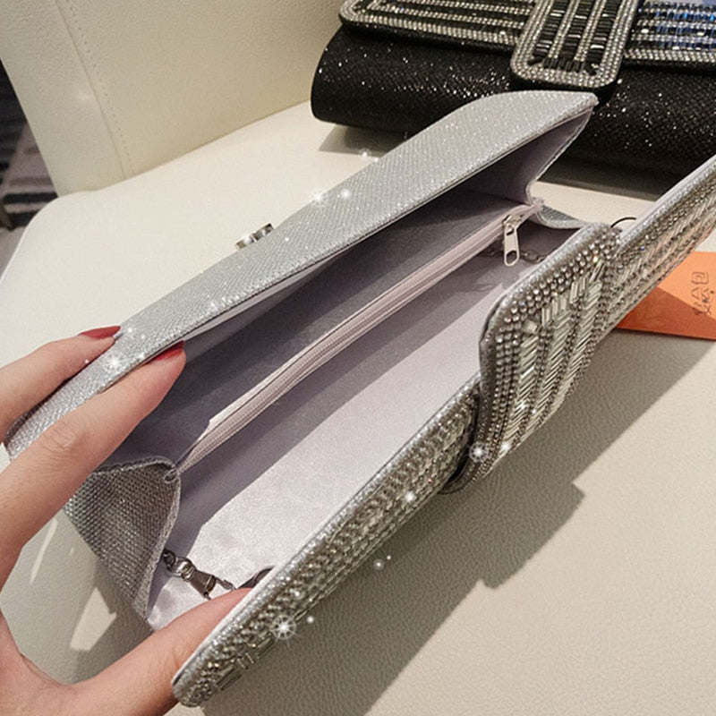Black Clutch Purse and Handbag with Rhinestone Women's Party Evening Bag Luxury Wedding Clutch Female Shoulder Bag Bolso ZD1460