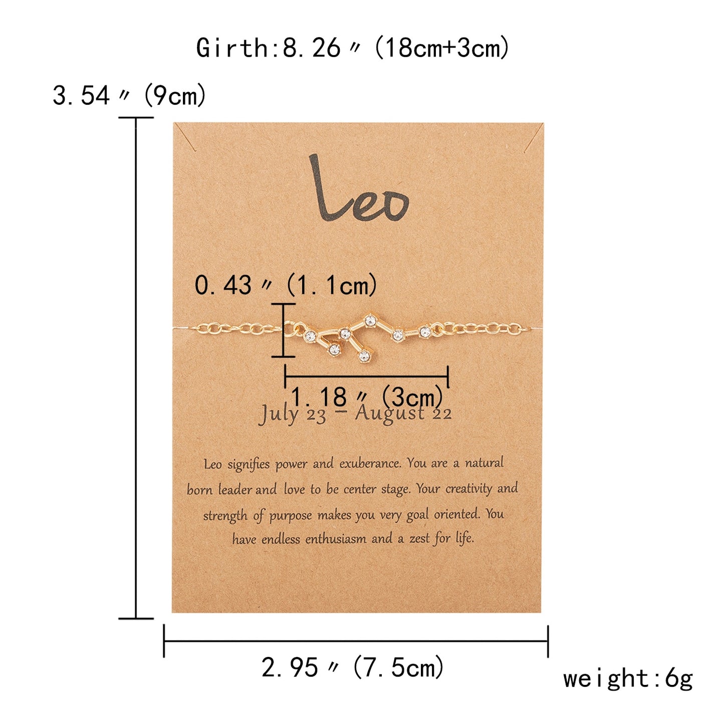Cardboard Star Zodiac Sign 12 Constellation Bracelet Crystal Charm Gold Color Chain Bracelet for Women Birthday Jewelry Gifts