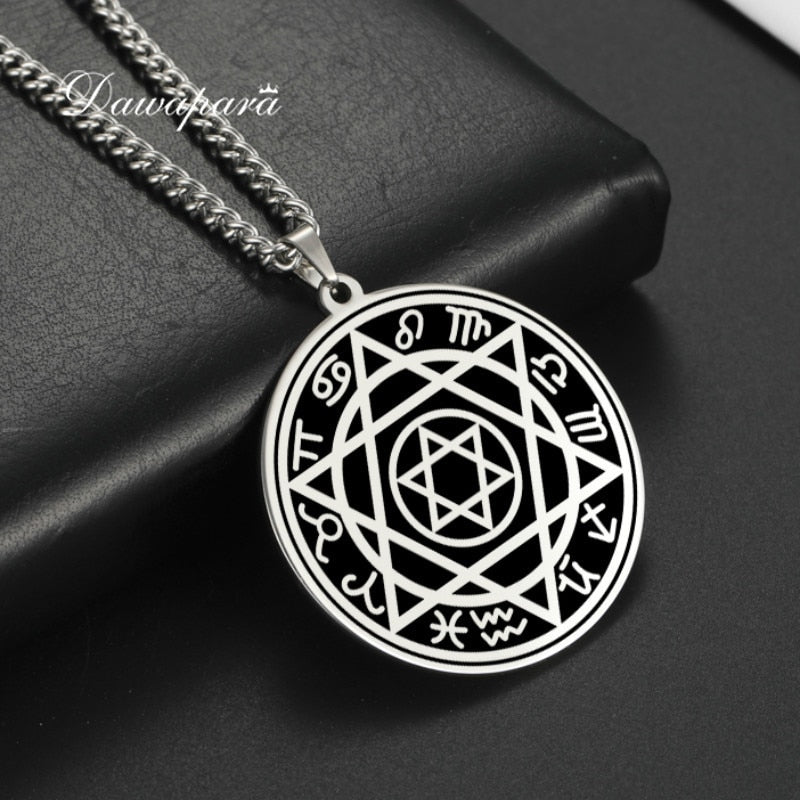Dawapara Talisman Seal Solomon Six-pointed Star 12 Constellation Pendant Hexagram Stainless Steel Necklaces