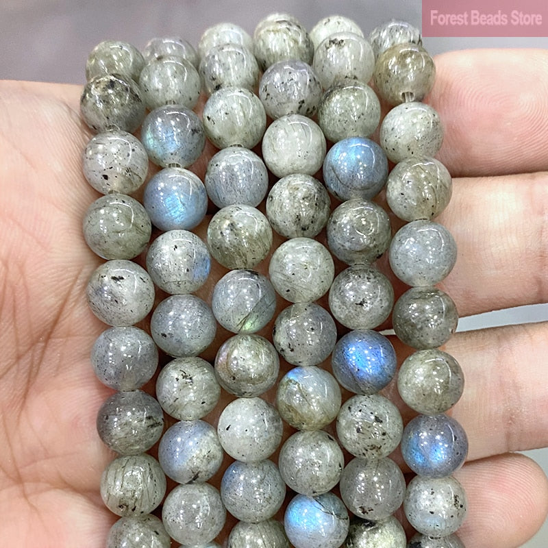 Gray Labradorite Beads Natural Stone Round Loose Beads For DIY Making Bracelet Necklace Jewelry Charm 15'' Inch 4/6/8/10/12mm