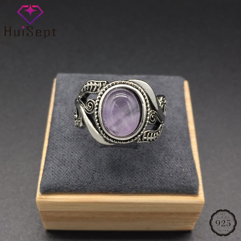 HuiSept Vintage 925 Silver Ring Amethyst Gemstone Flower Shaped Fashion Jewellery Rings for Female Wedding Party Gift Wholesale