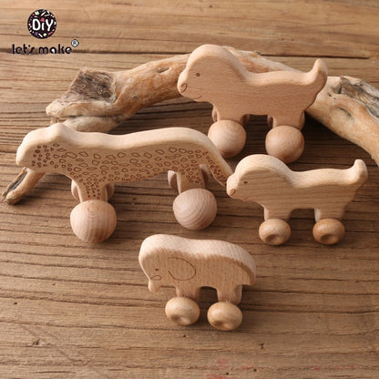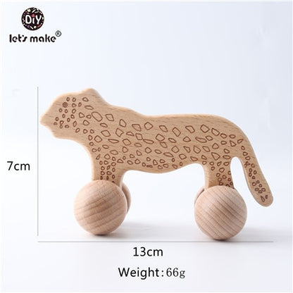 Let's Make Beech Wooden Animals 1pc Dogs Car Cartoon Elephants Montessori Toys For Children Teething Nursing Baby Teethers