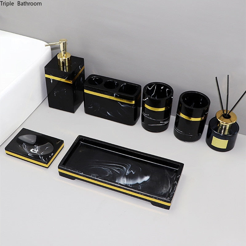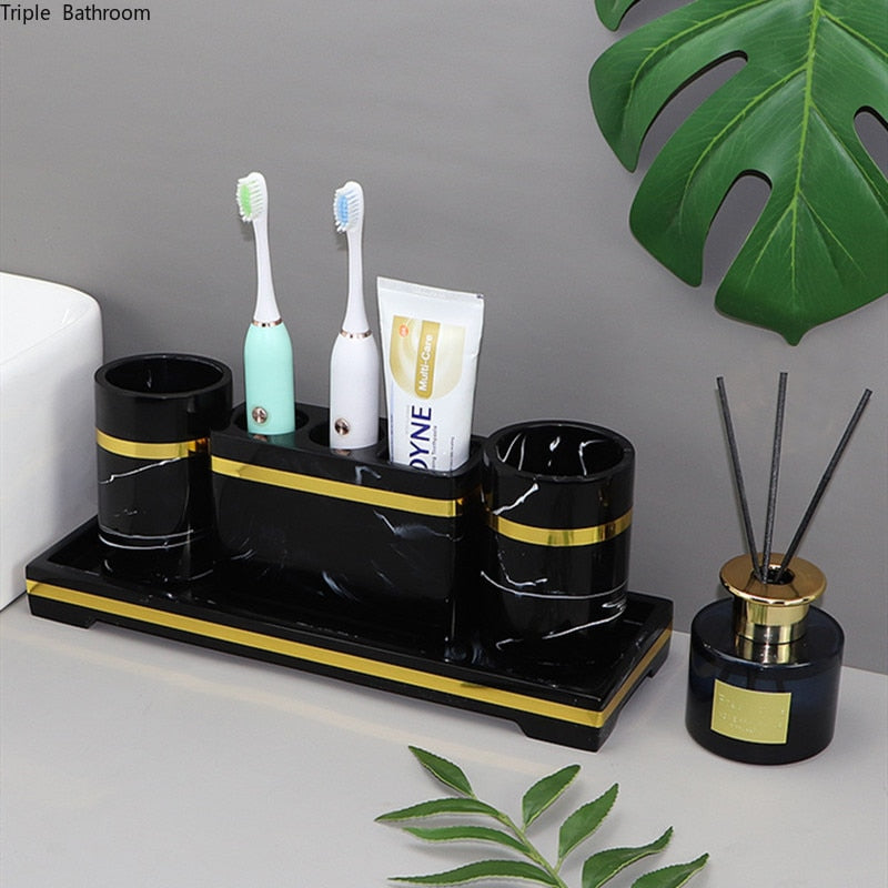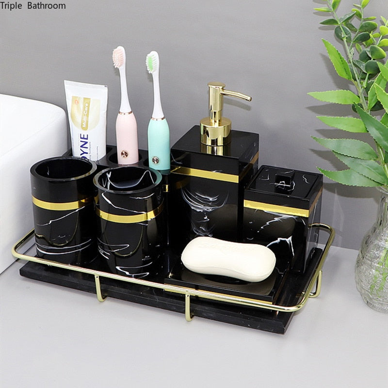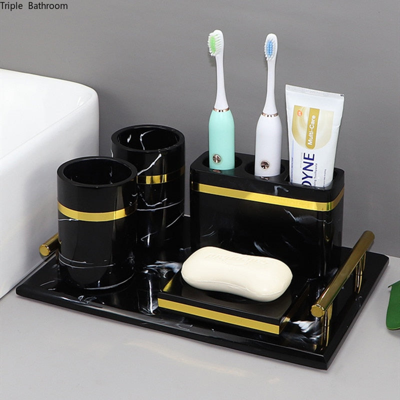 Light Luxury Bathroom Toiletry Set Resin Household Soap Dish Toothbrush Holder Mouth Cup Liquid Soap Dispenser Washing Tools