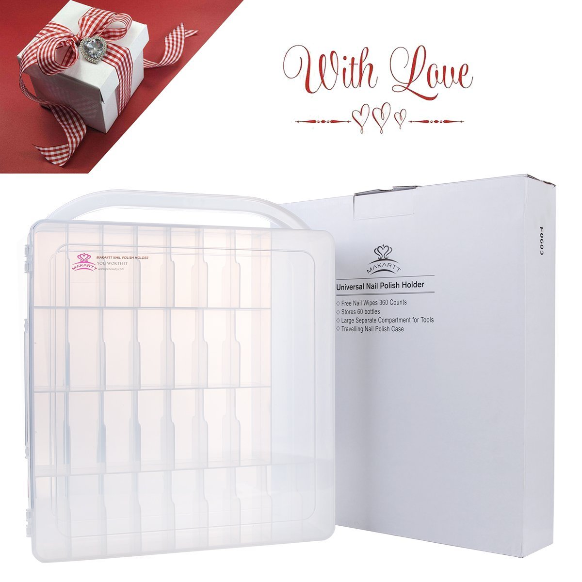 Makartt Professional Nail Polish Holder Organizer for 48 / 60 Bottles with Large Separate Compartment for Tools Storage Box