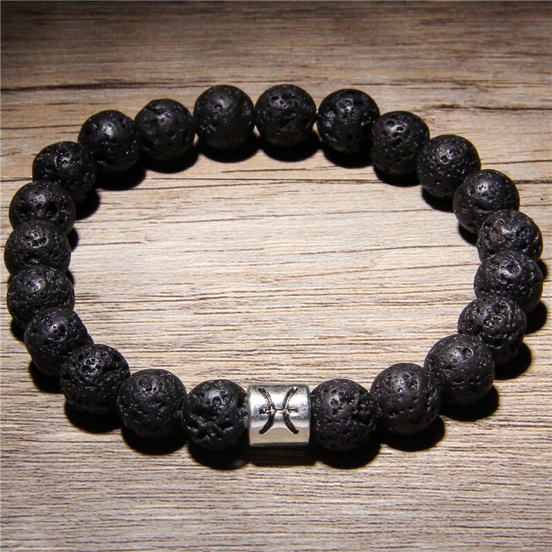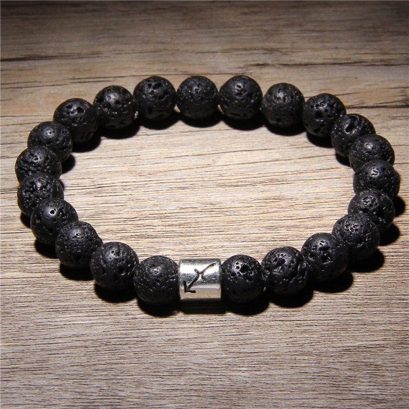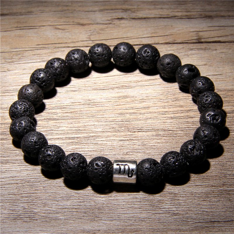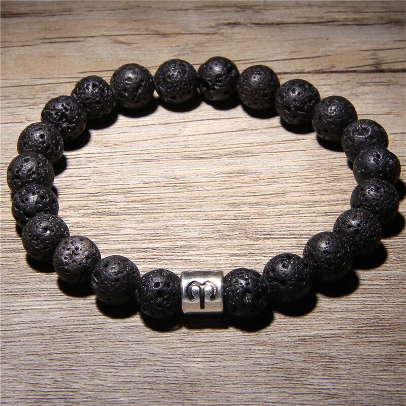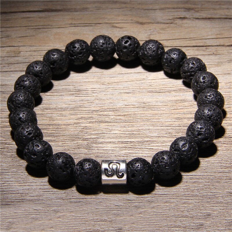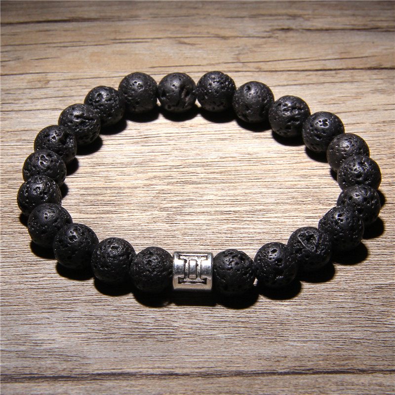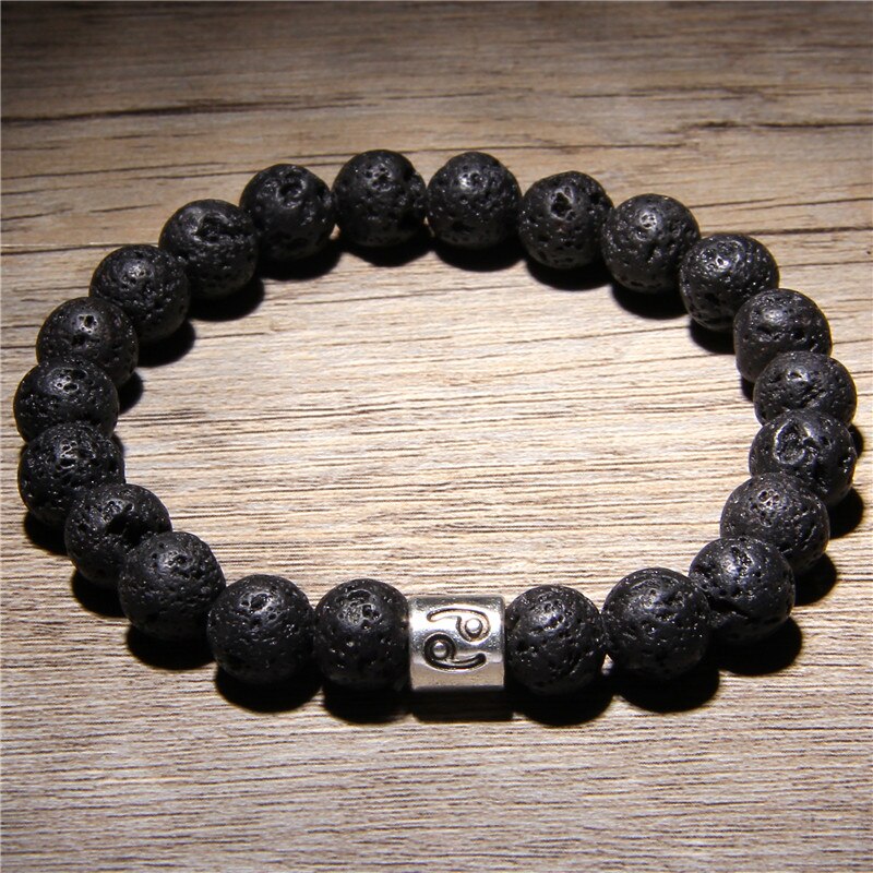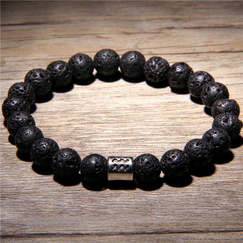 Men 12 constellations Zodiac Natural Volcanic Lava Stone beads Diffuser Charm Bracelet Man Woman Jewelry black lava bracelets