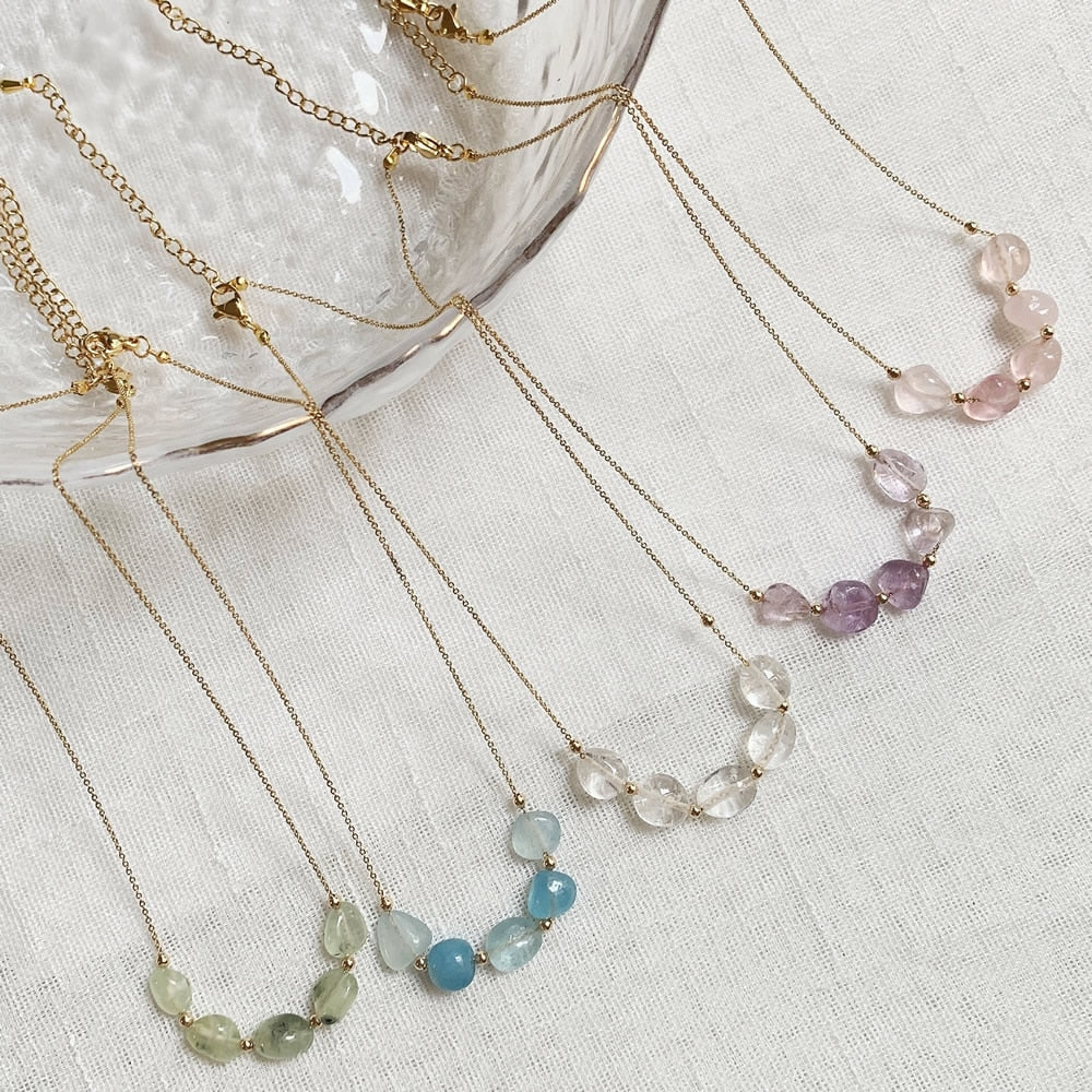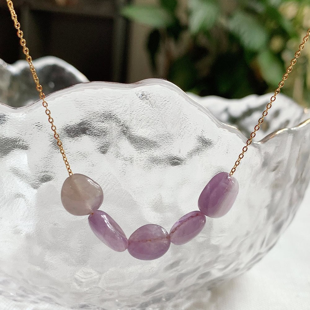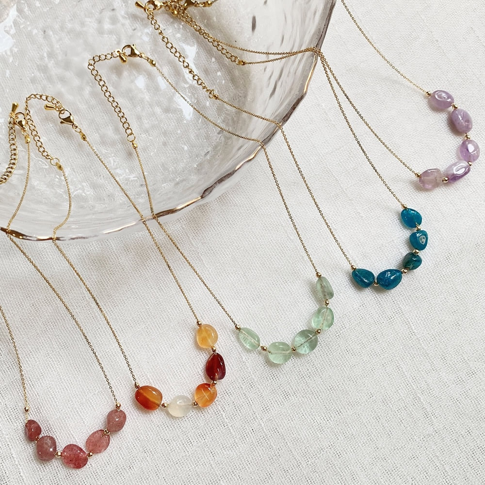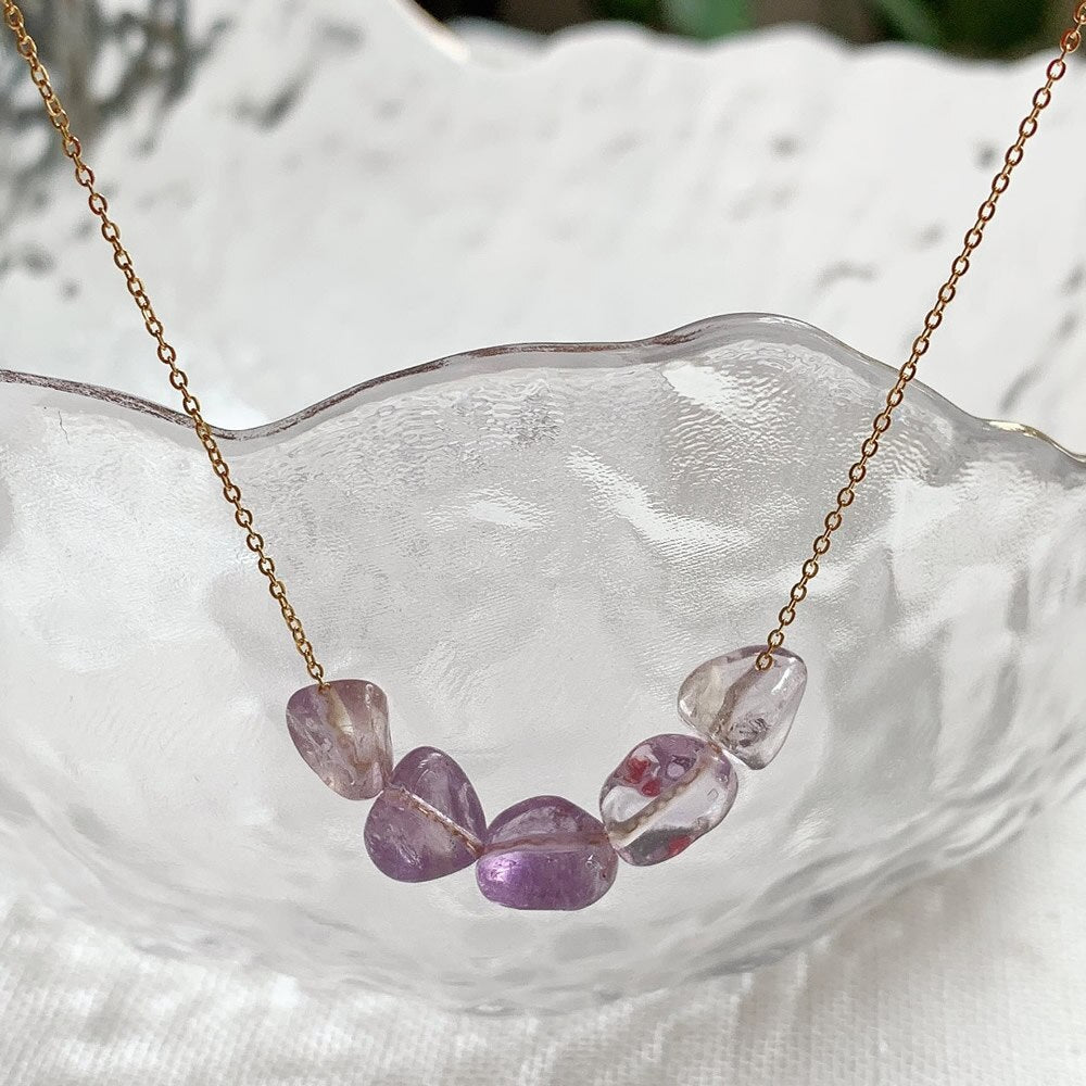 Minimalist Natural Crystal Stone Necklace Irregular Mineral Quartz Citrines Fluorite Purple Crystal Charm Tiny Chain Choker