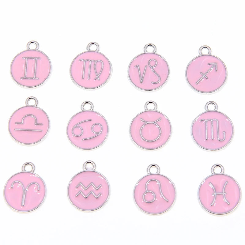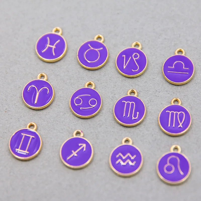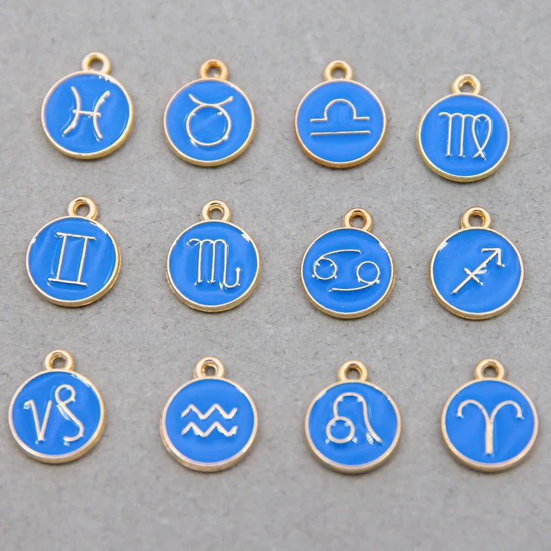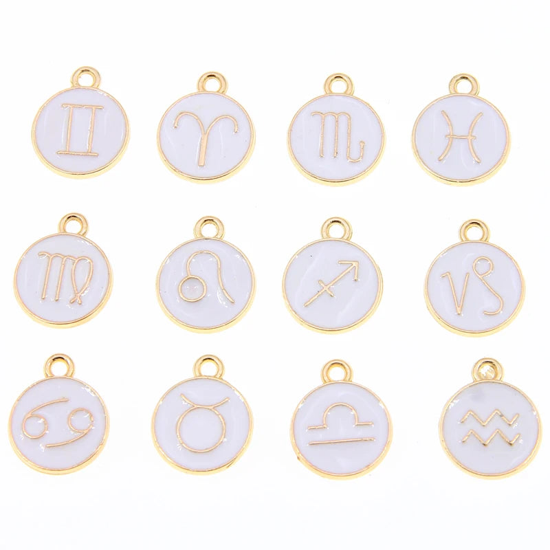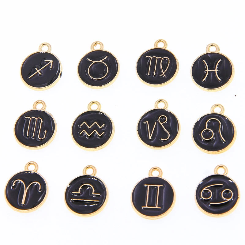 multiple colour (12 Pieces/Set) Metal Alloy 8 Colors Enamel Zodiac Signs Charms Pendant Diy Hand Made Jewelry Accessories