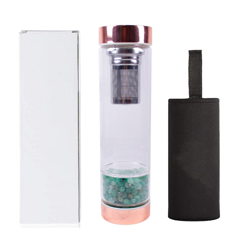 Natural Crystal Elixir Bottles gemstone Glass therapy stone Tea filter filter bottle Healing Crystal Infuser Energy cup