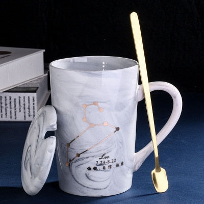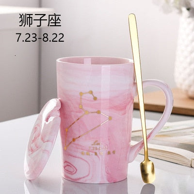 Natural Marble 12 Constellation Ceramic Pink Zodiac Mug With Lid Coffee Mugs Creative Personality Cup 380ml Cups And Mugs Xicara