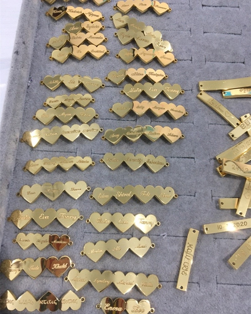 Personalized Family Members Name Bracelet Anniversary Jewelry Stainless Steel Cute Heart Engraving Nameplate Charm Bracelet