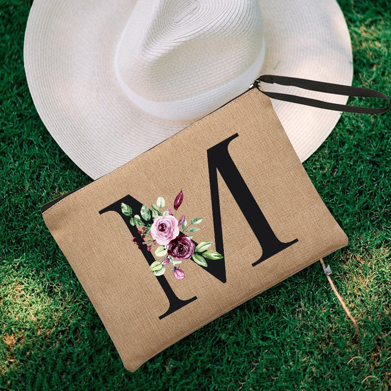 Simple Linen Wristlet Clutch Bag Bachelorette Clutch Beach Holiday Travel Organizer Case Bachelorette Party Bag Wedding Gift