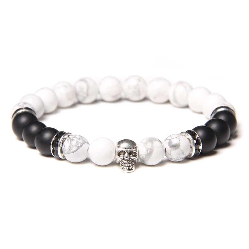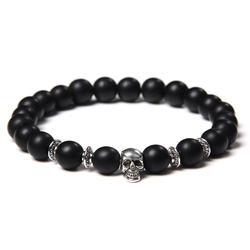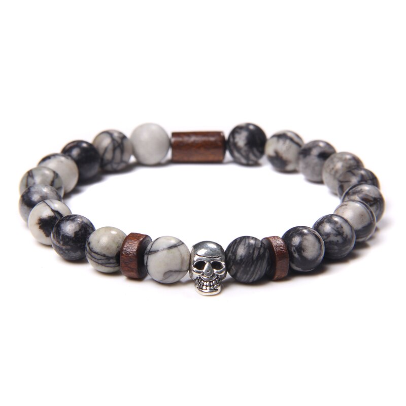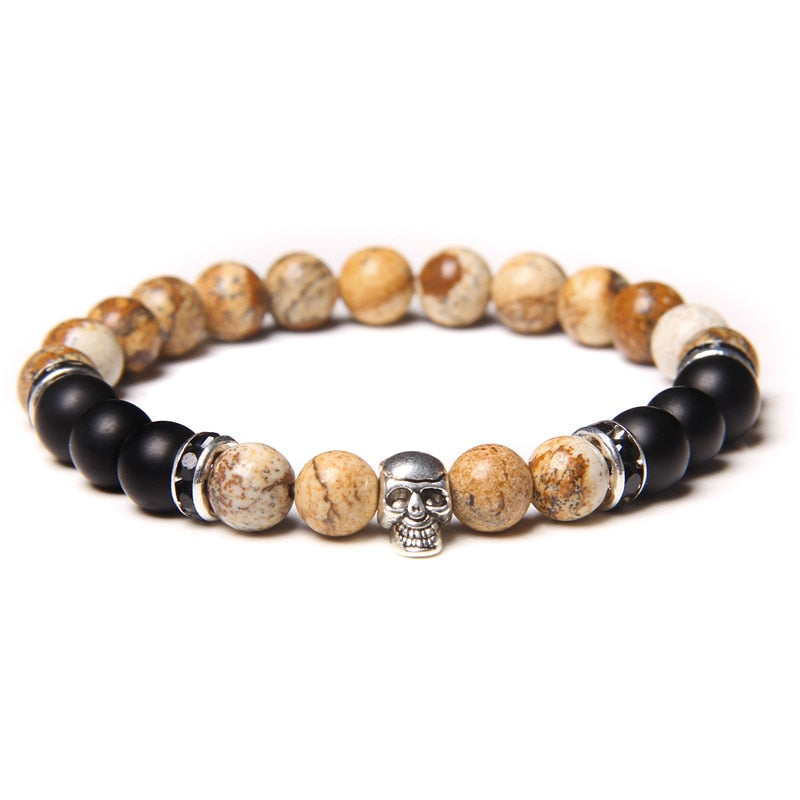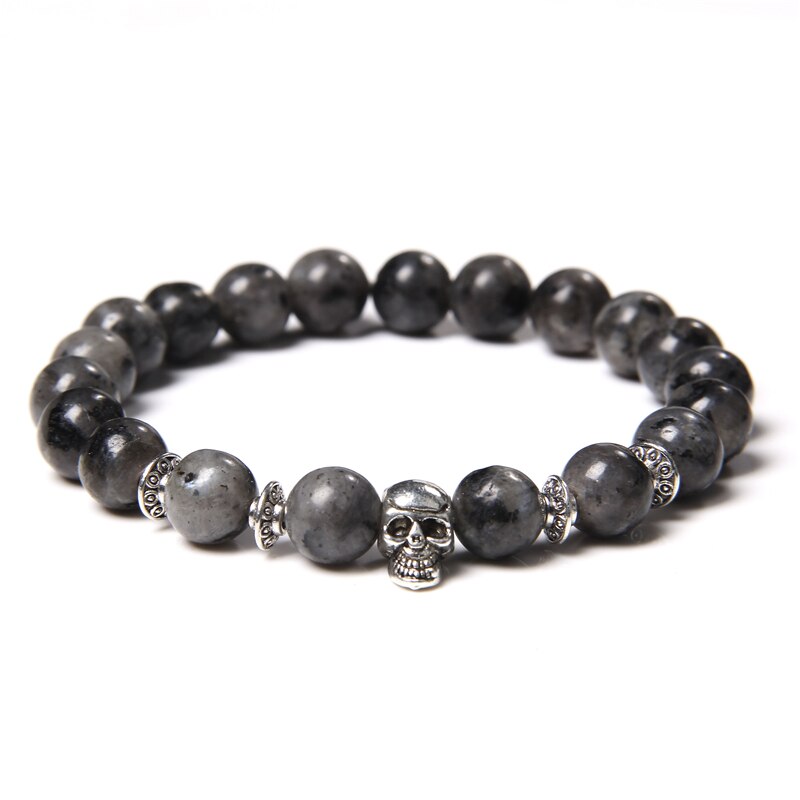 Skull Bracelets For Men Women Natural Stone Tiger Eye Bracelet Malachite Labradorite 8MM Beads Stretch Bangles Punk Jewelry