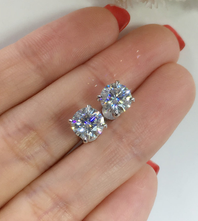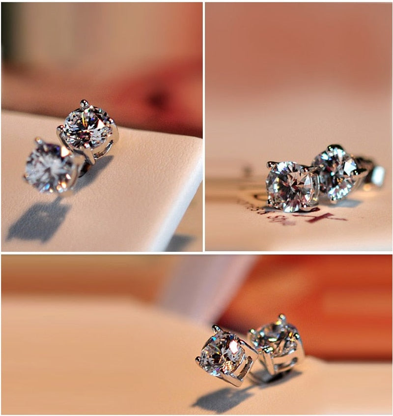 With Credentials Allergy Free 100% Real 925 Silver Needle Earrings Round 6mm/8mm Clear Cubic Zircon Stud Earrings Gift for Women