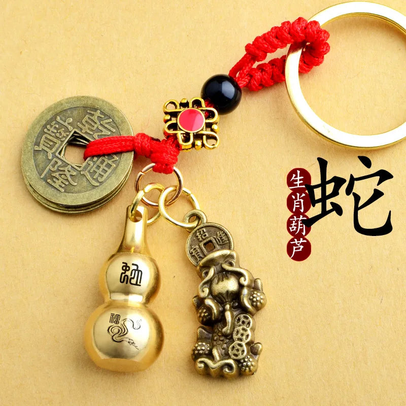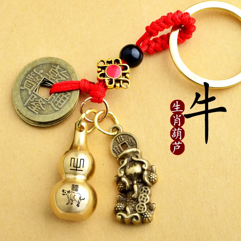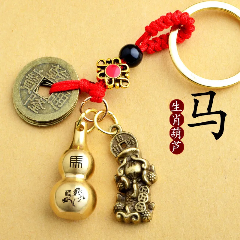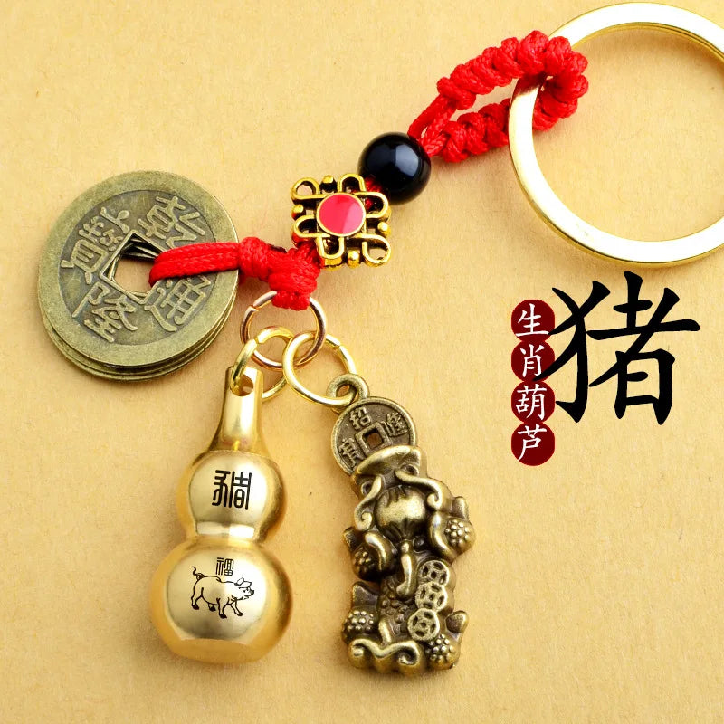 Zodiac Pixiu Pendant Charms Car Key chain Gourd Five Emperors Fortune Coin Keychain Accessories Chinese Fengshui Beast Wealth